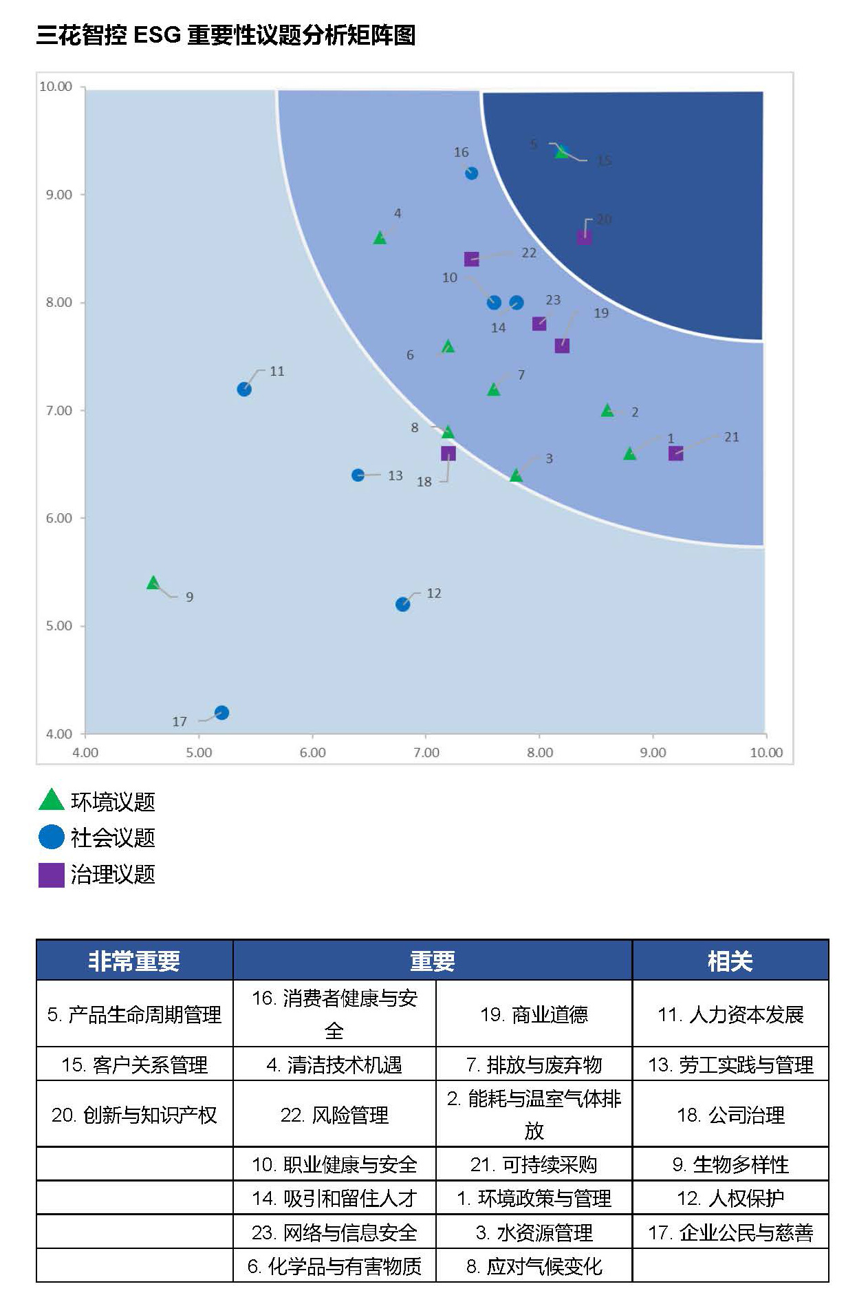 公司制定了可持續(xù)發(fā)展規(guī)劃及目標(biāo),梳理出23個(gè)環(huán)境、社會(huì)、公司治理相關(guān)議題,并進(jìn)行了ESG重要性議題分析。