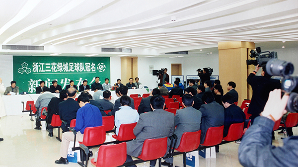 2001年4月4日,浙江三花綠城足球隊(duì)冠名新聞發(fā)布會(huì)在杭州黃龍?bào)w育中心召開,三花冠名浙江綠城足球隊(duì)三年,總投入1000萬(wàn)元。