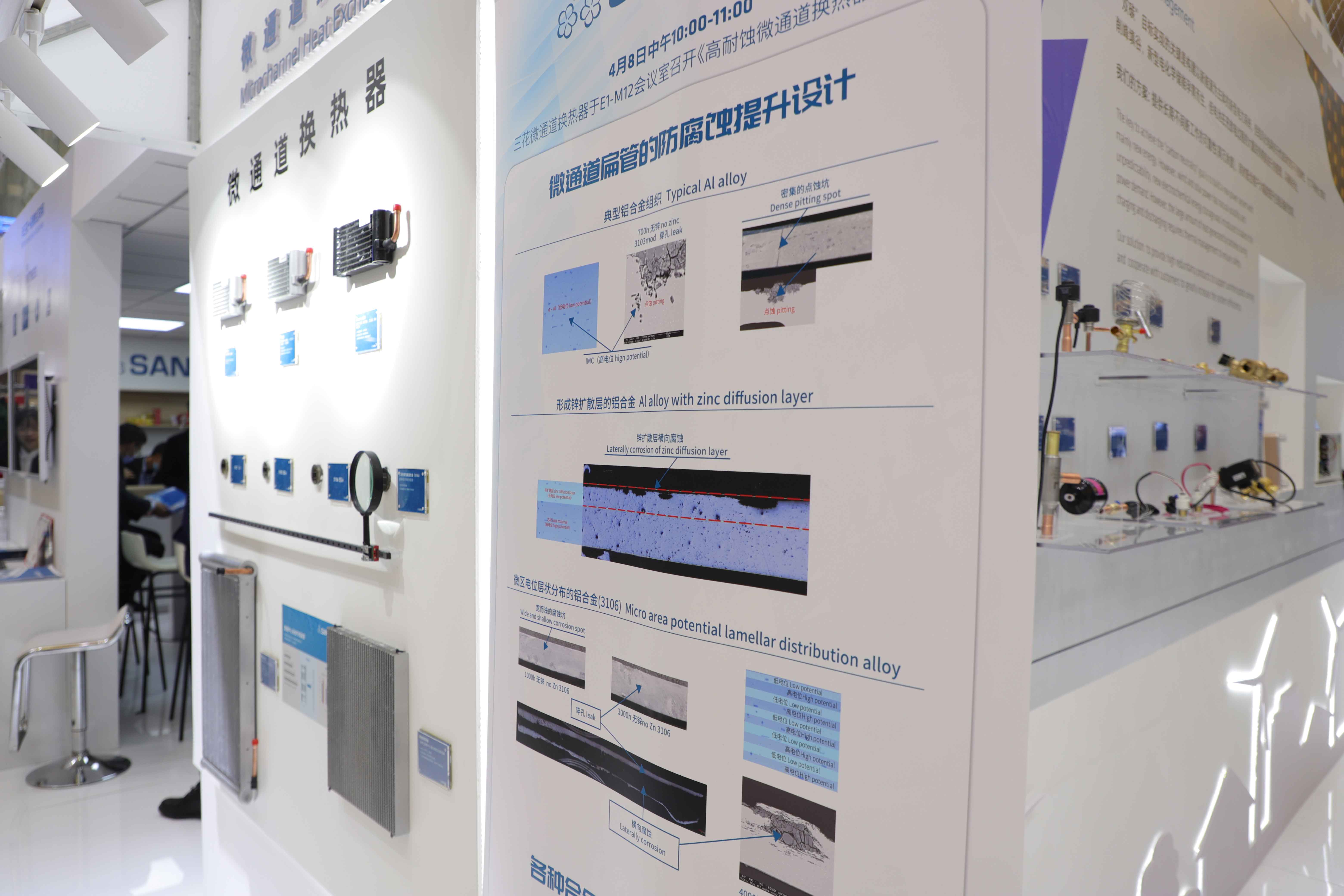 三花微通道展出耐腐蝕涂層產(chǎn)品。通過自研的長壽命扁管合金、親水涂層、TCP涂層等,極大提高了產(chǎn)品的耐腐蝕壽命,得到市場認可。