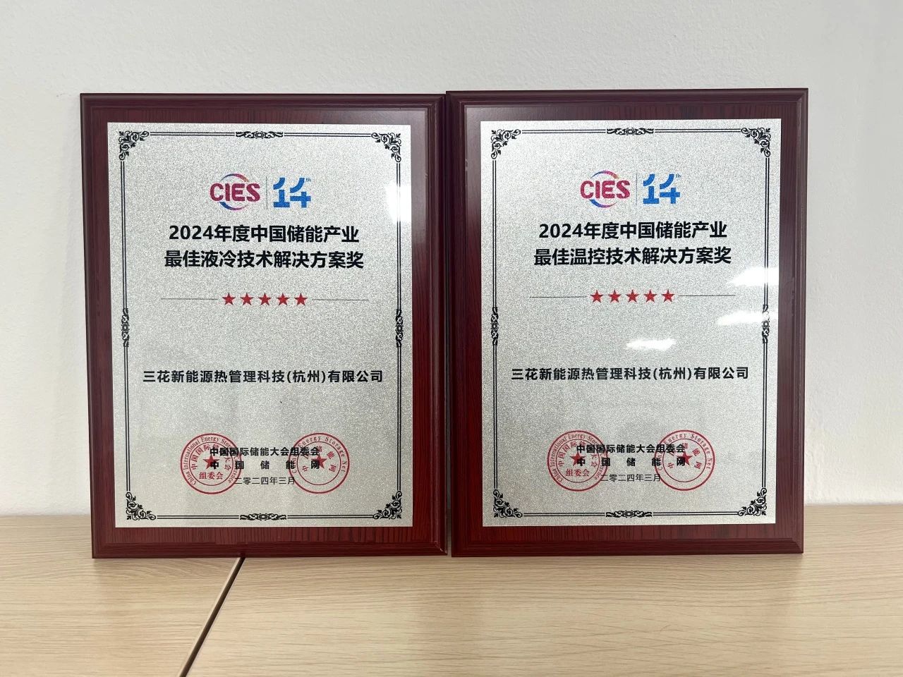 本次大會上,三花新能源依托優秀的產品技術迭代能力和科技創新實力,斬獲“2024年度中國儲能產業最佳液冷技術解決方案獎”,同時憑借安全可靠、高效節能的精密溫控解決方案.斬獲“2024年度中國儲能產業最佳溫控技術解決方案獎”。